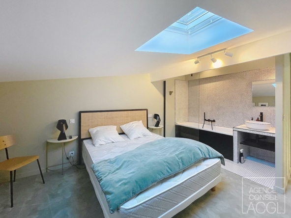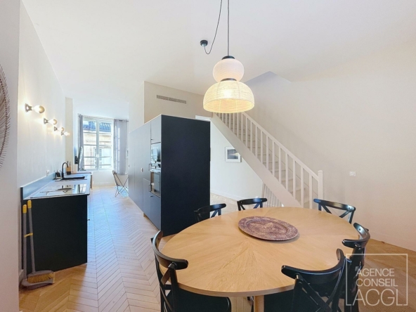 Venez découvrir ce superbe duplex meublé de type 3bis d’environ 79.80m². Il comprend une cuisine aménagée et équipée avec sa salle à manger et ouverte sur un séjour lumineux, un bureau au rez de chaussée, et un wc séparé. A l’étage vous trouverez deux magnifiques chambres avec chacune leur salle de bain et salle d’eau, et un wc séparé sur pallier.