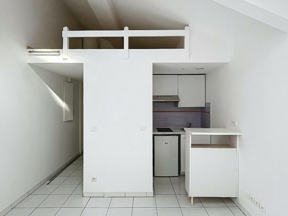 Venez découvrir ce studio d’environ 17.96m2 comprenant une entrée, un séjour avec une kitchenette, une salle d’eau avec WC, ainsi qu’une mezzanine.
